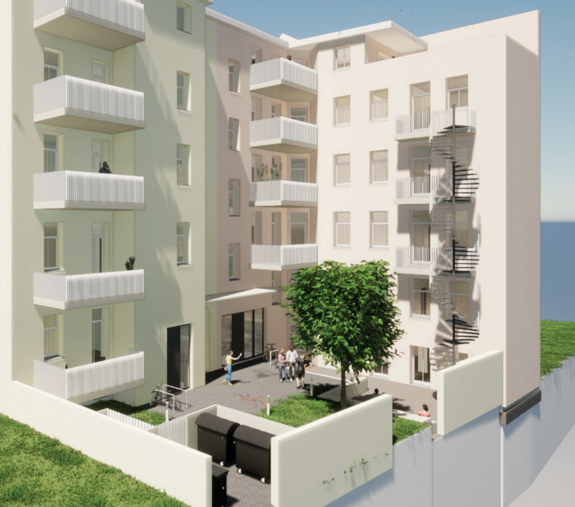 Sanierung von zwei Mehrfamilienhäusern durch zukunftsorientierte Architektur und Bauweise.